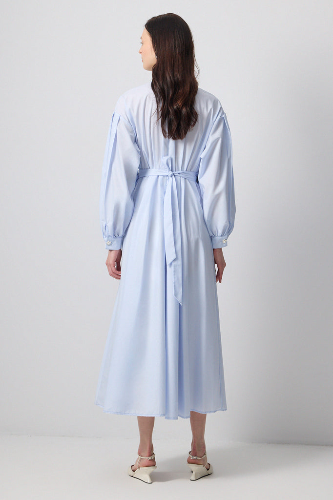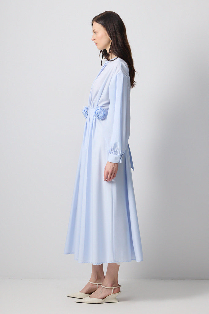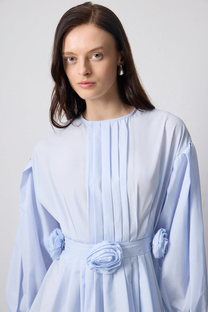 PLEATED POPLIN DRESS WITH FLORAL DETAILS
