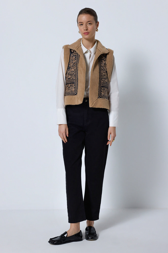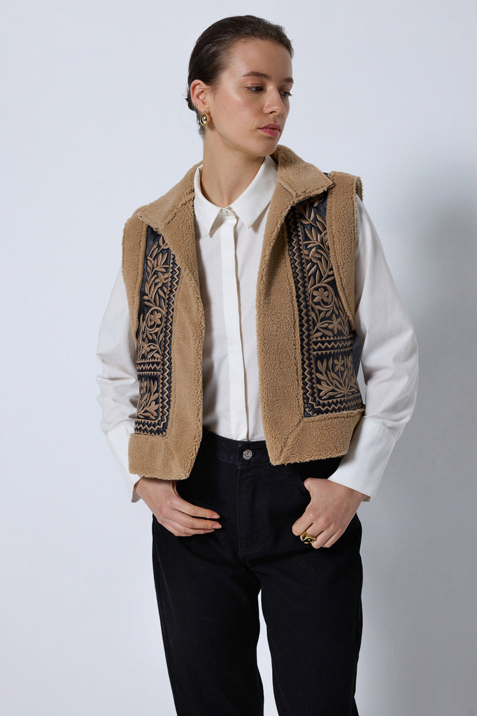 LEATHER DETAILED EMBROIDERED WEST