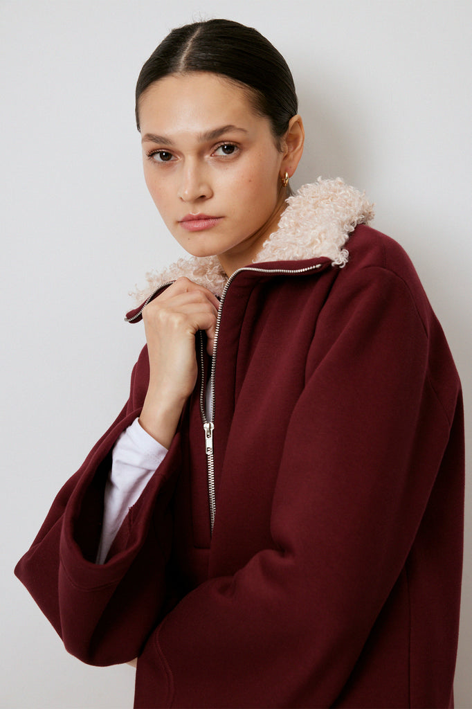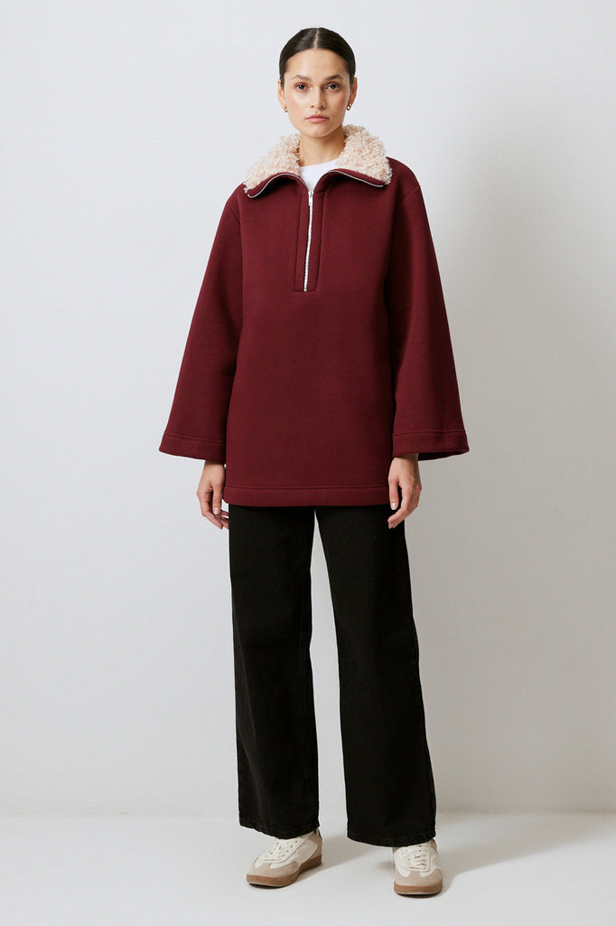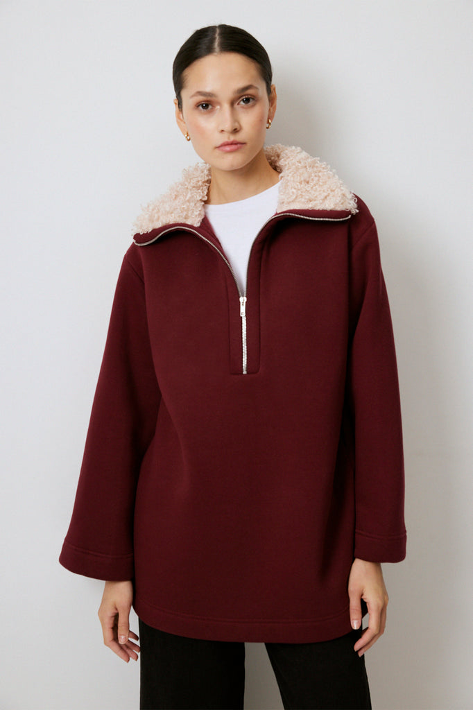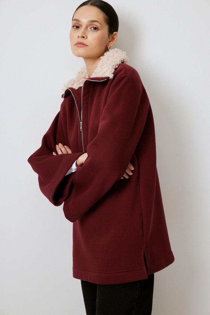 FAUX FUR COLLAR SWEATSHIRT