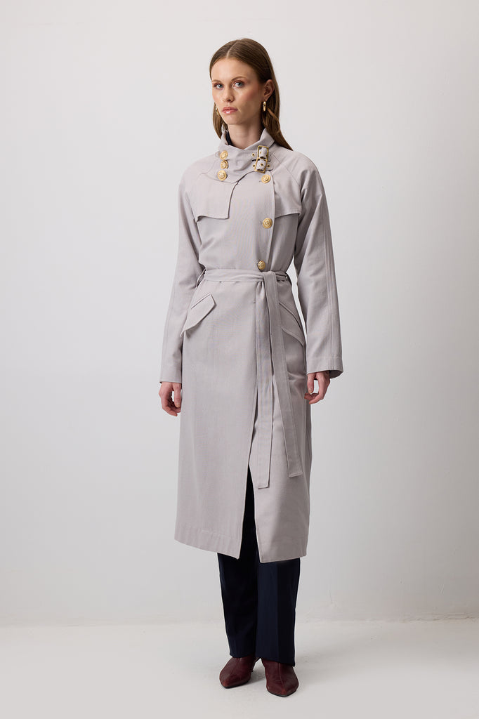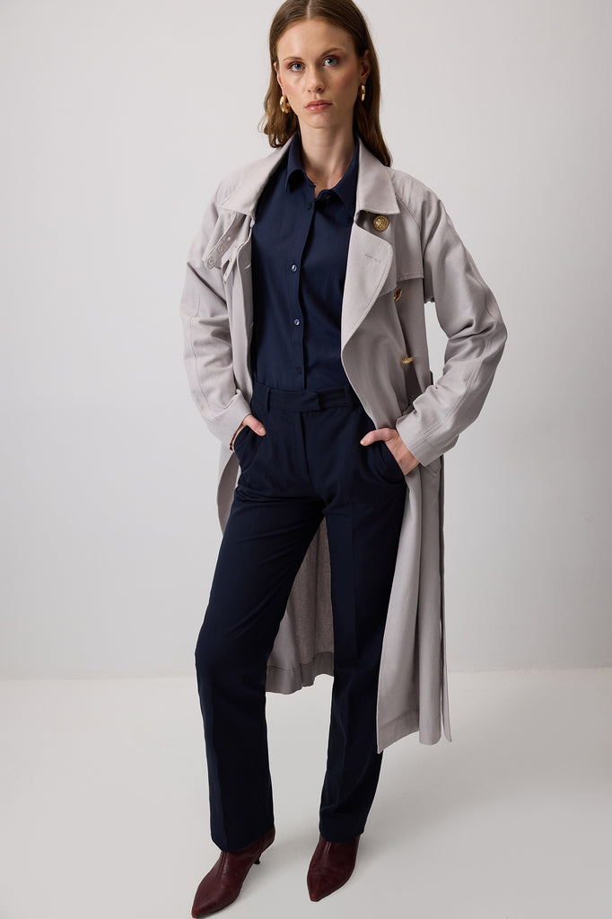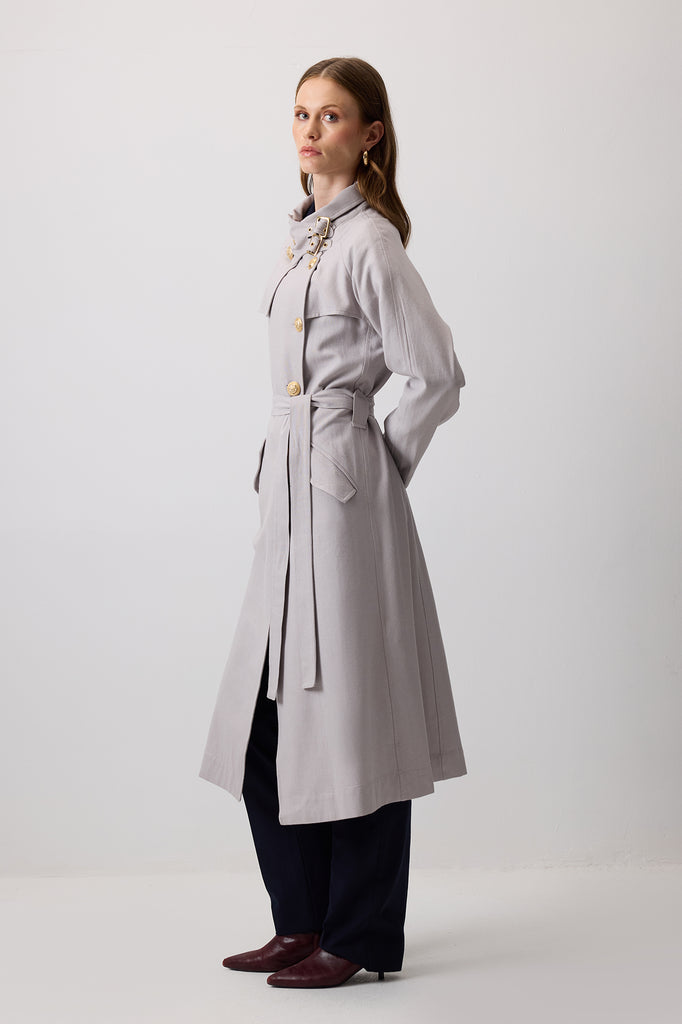 GOLD BUTTONED DOUBLE BREASTED LINEN TRENCH COAT