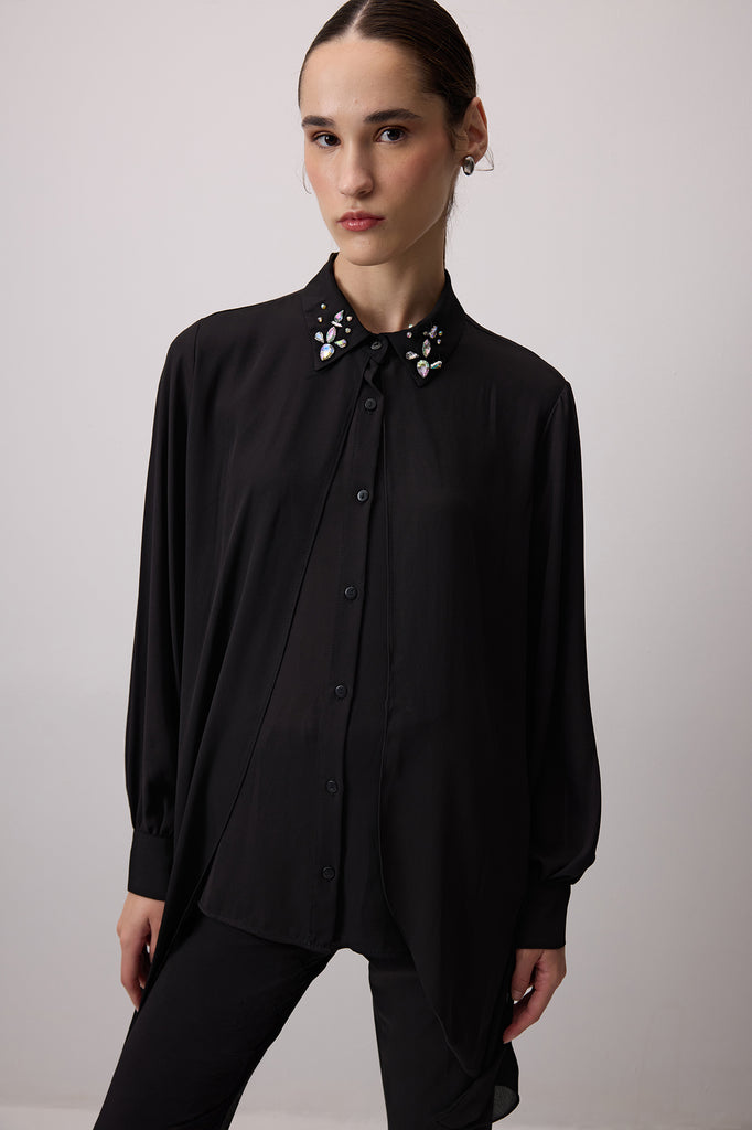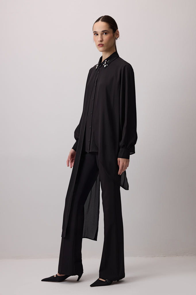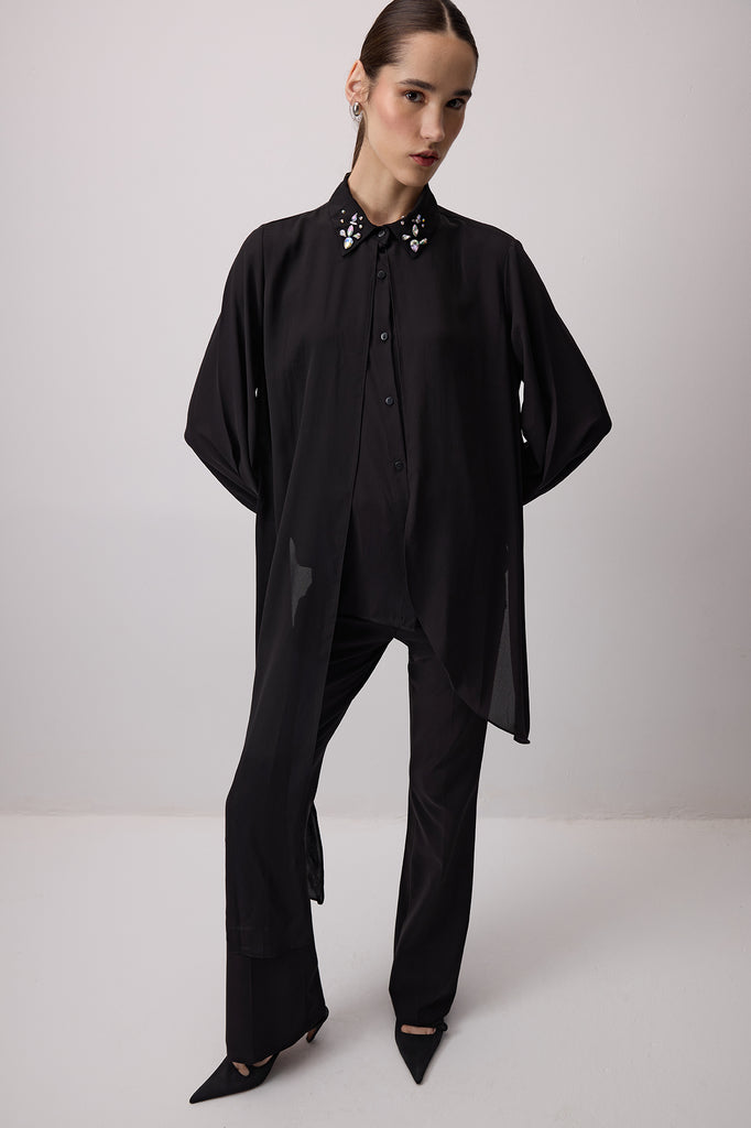 STONE EMBROIDERED CHIFFON SHIRT
