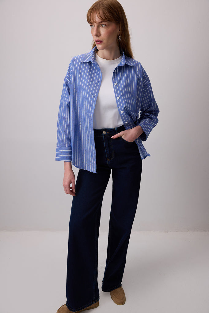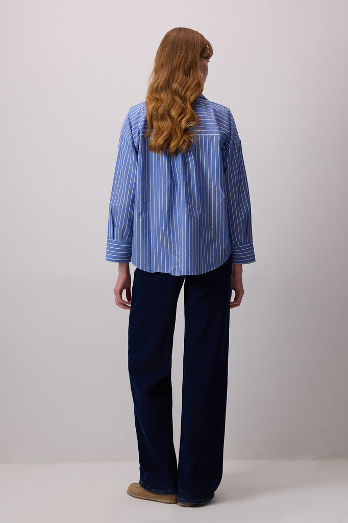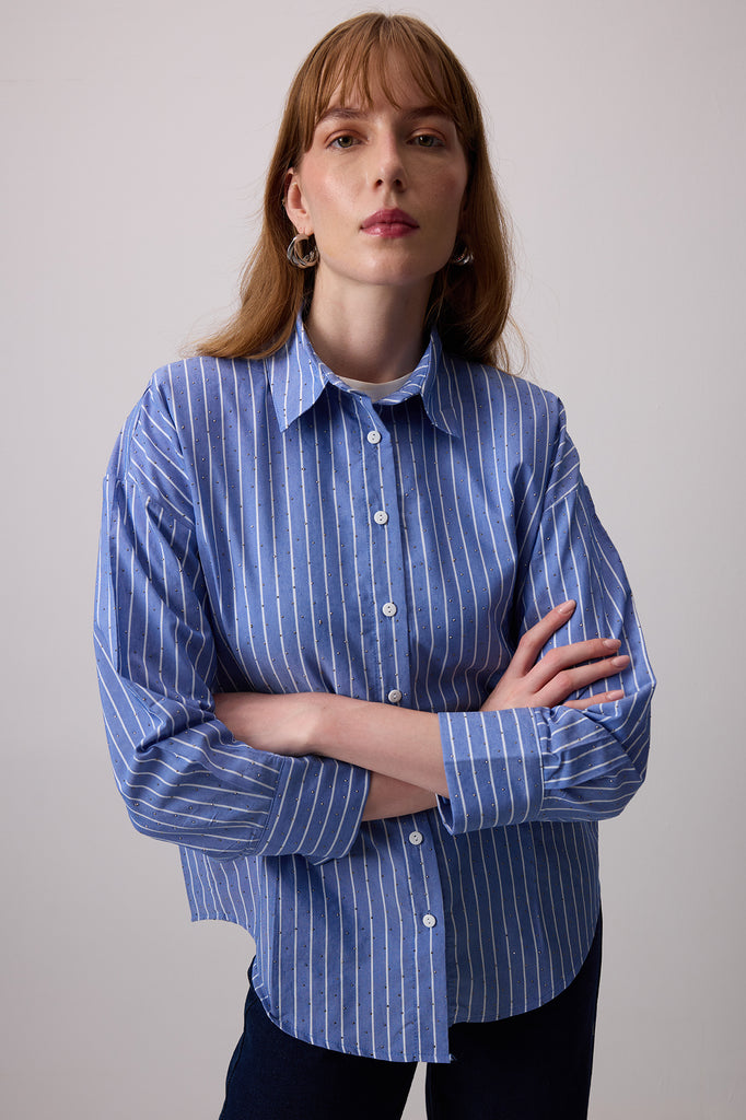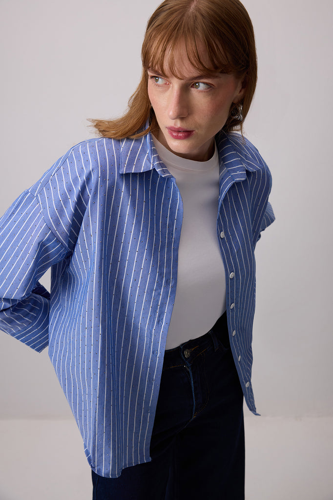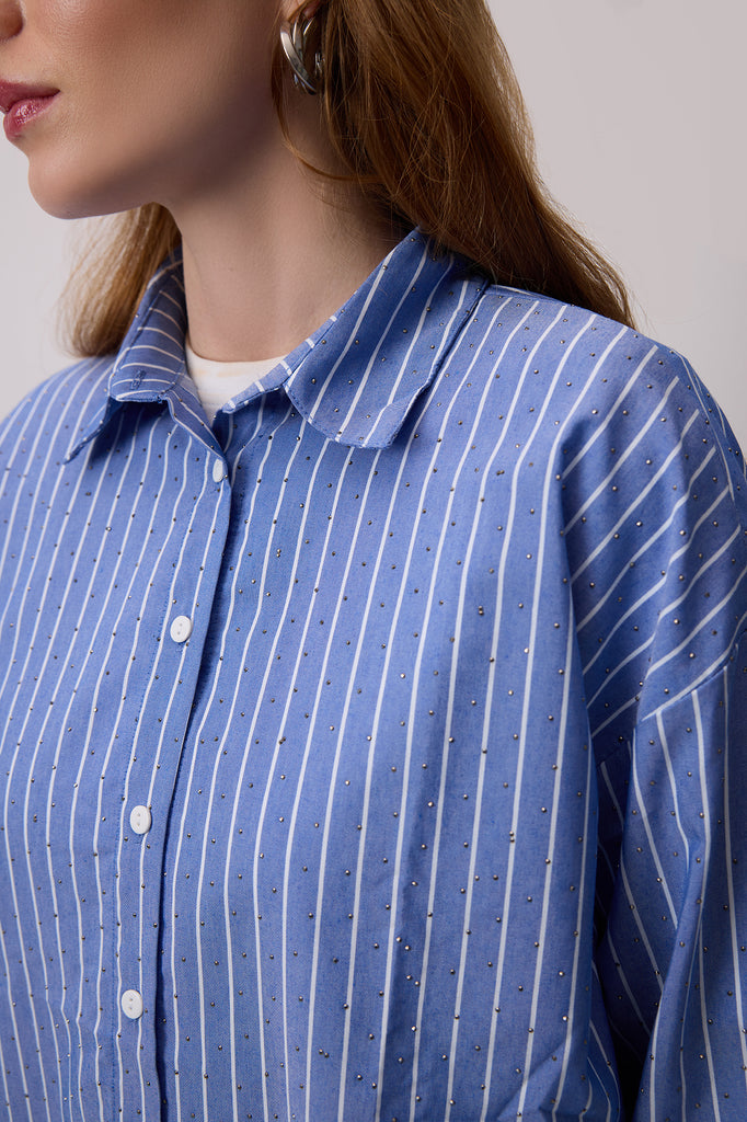 STONE EMBROIDERED STRIPED POPLIN SHIRT