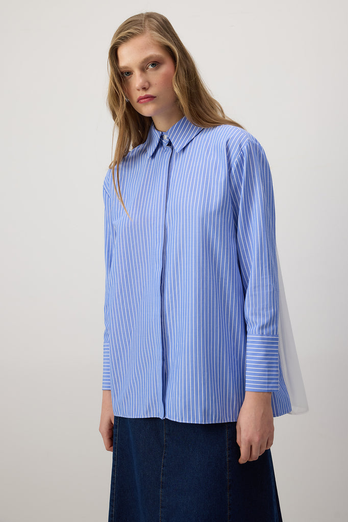OVERSIZED STRIPED SHIRT WITH SHIFON DETAILS