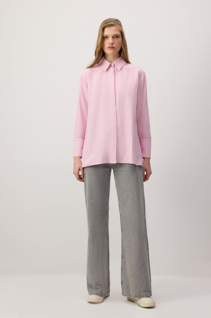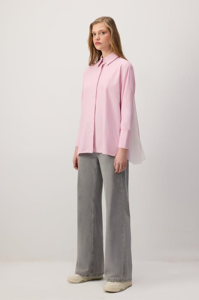 OVERSIZED STRIPED SHIRT WITH SHIFON DETAILS