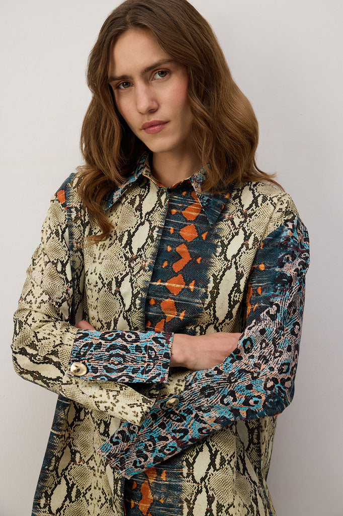 PATTERNED WIDE CUFF POPLIN SHIRT