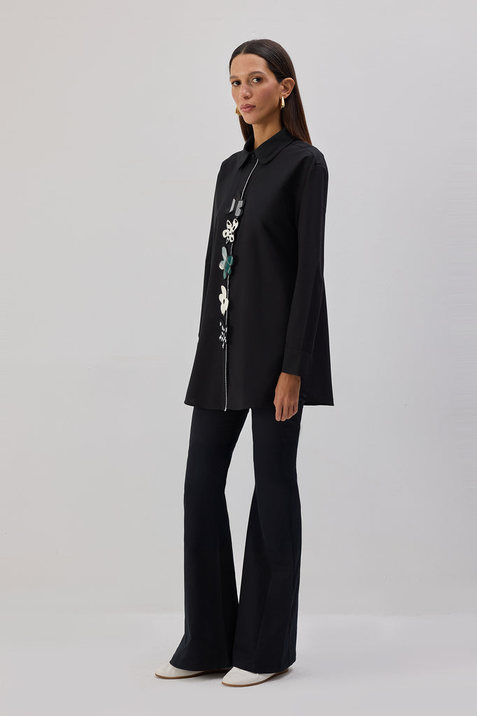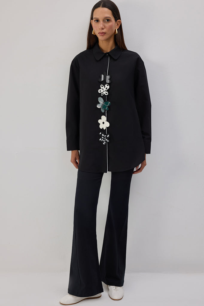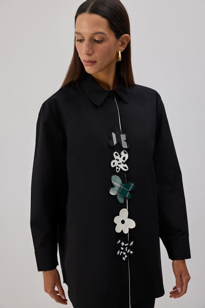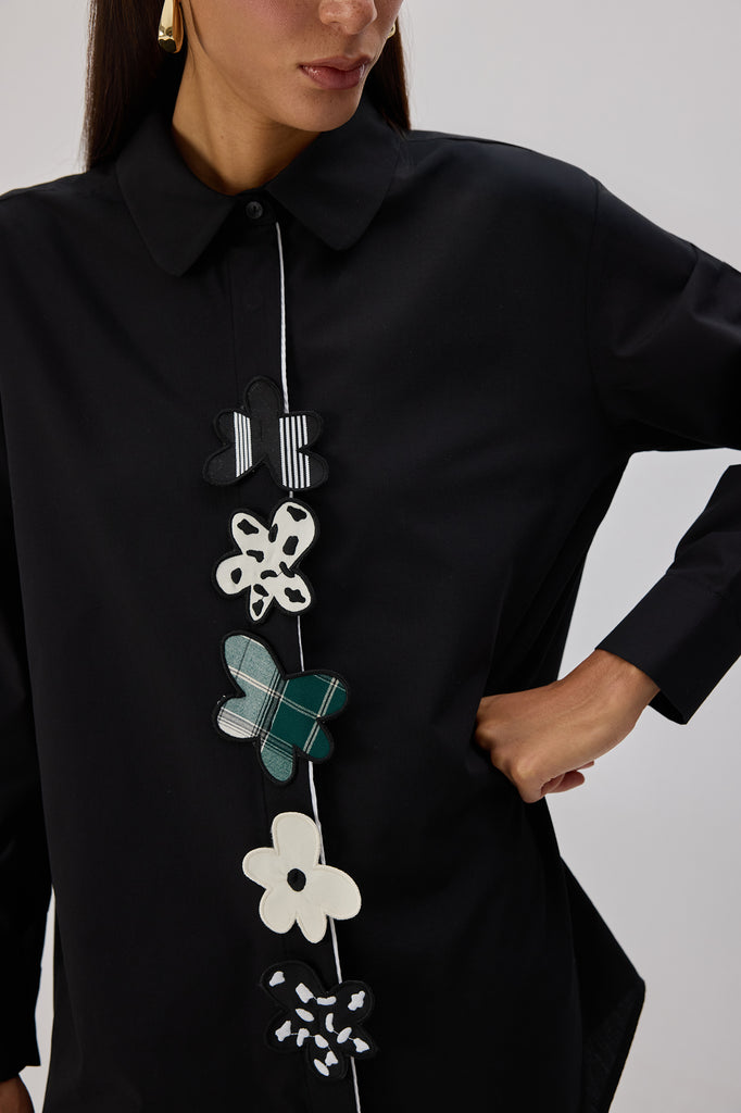 POPLIN SHIRT WITH FLORAL APPLIQUE