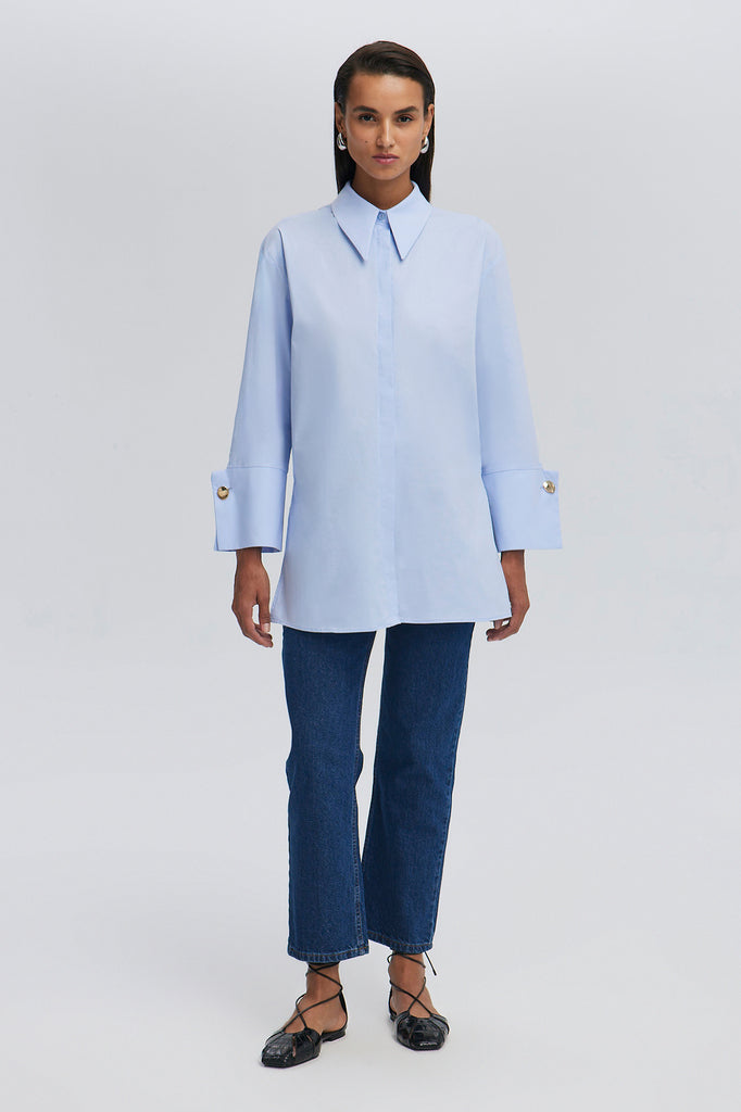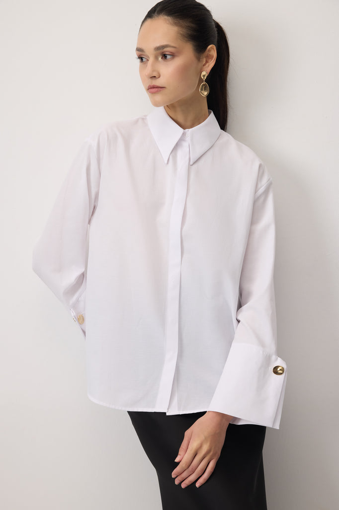 PATTERNED WIDE CUFF POPLIN SHIRT