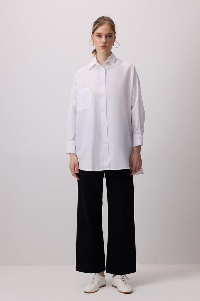 FLOWER EMBROIDERIED POPLIN SHIRT