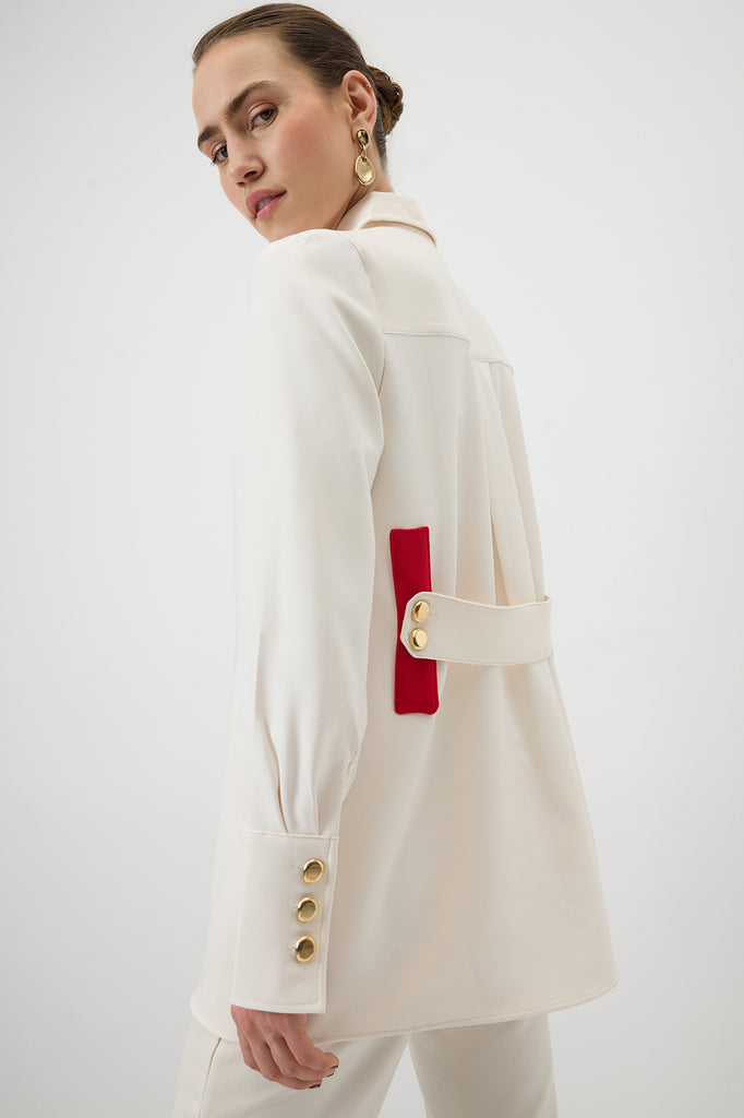DRAPED BLOUSE WITH METAL ACCESSORY