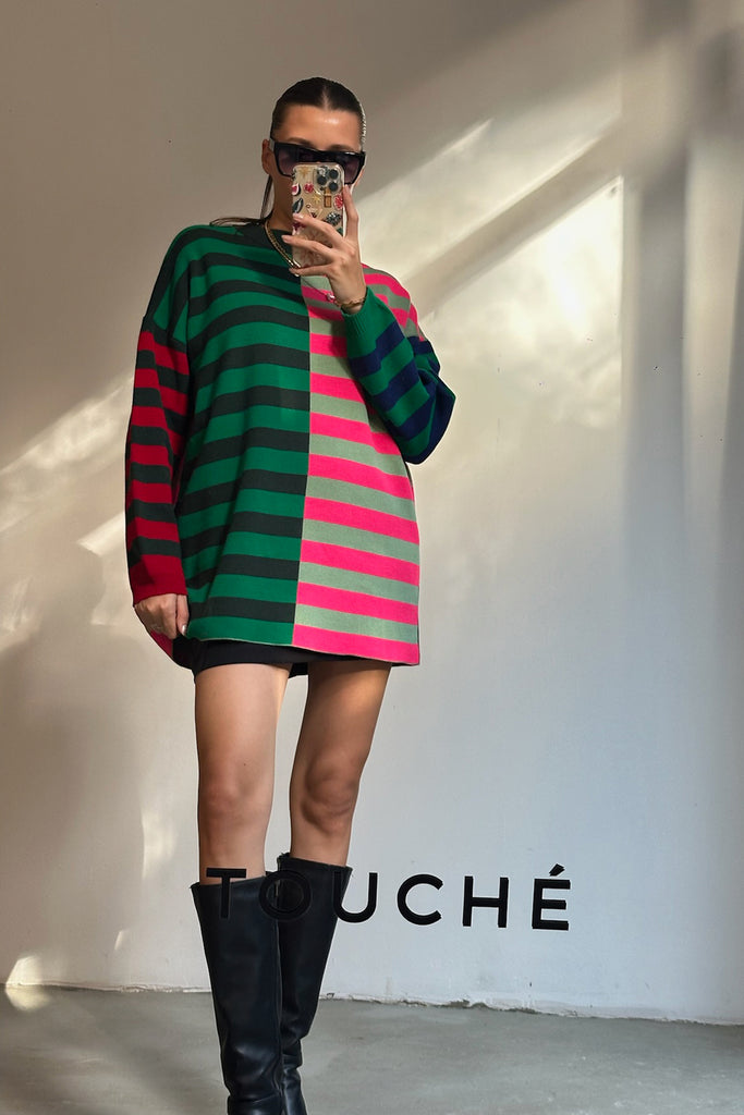 LEOPARD BLOCK PATTERNED KNIT TUNIC
