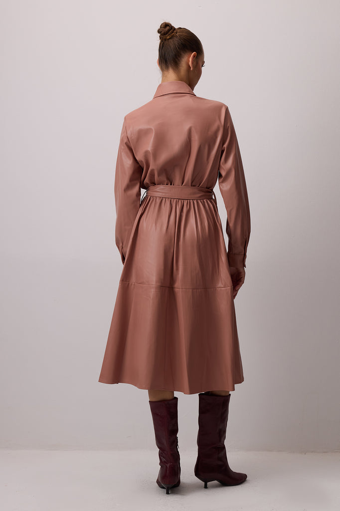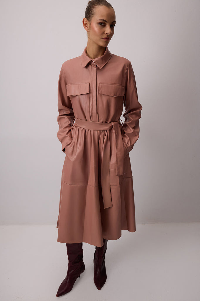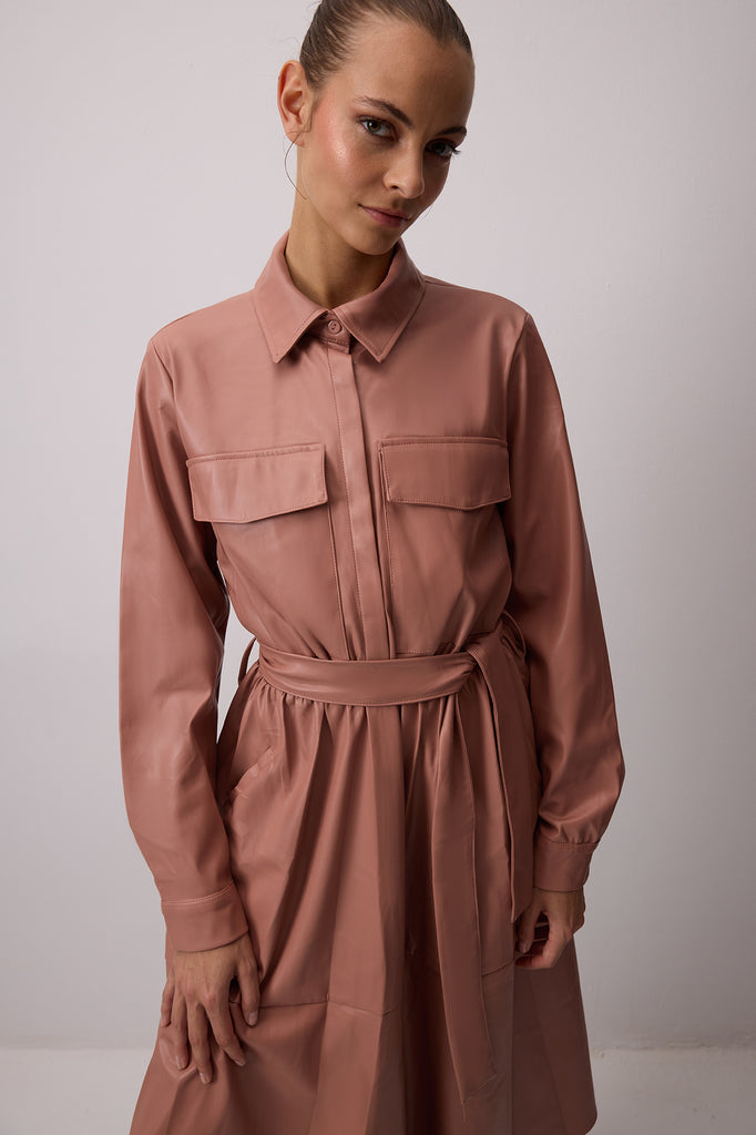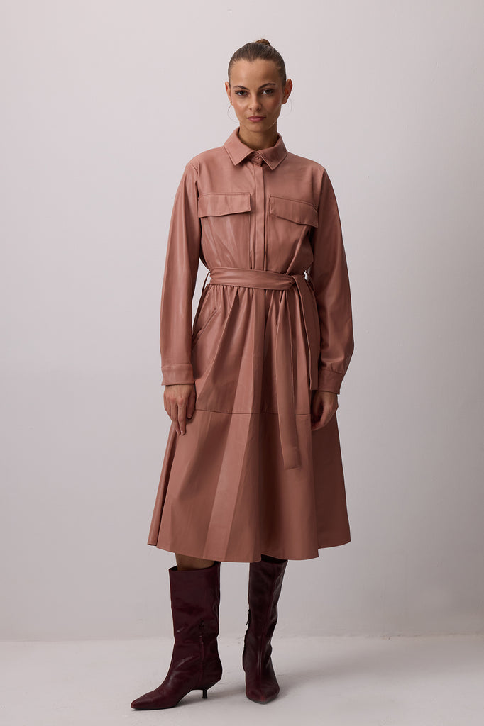 LONG LEATHER DRESS WITH FRONT POCKETS