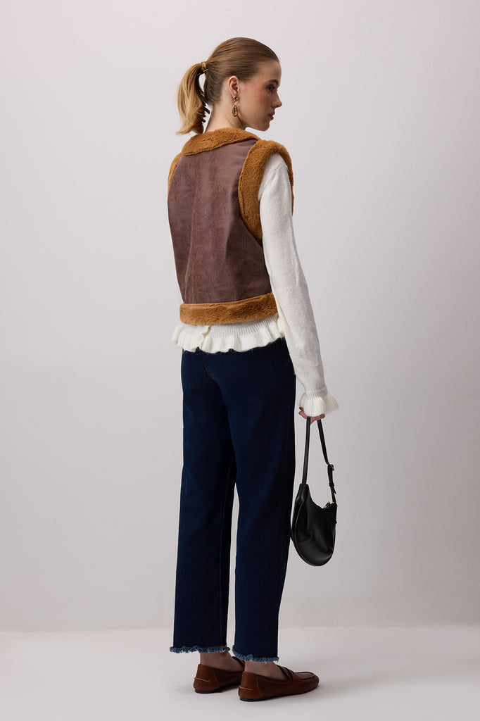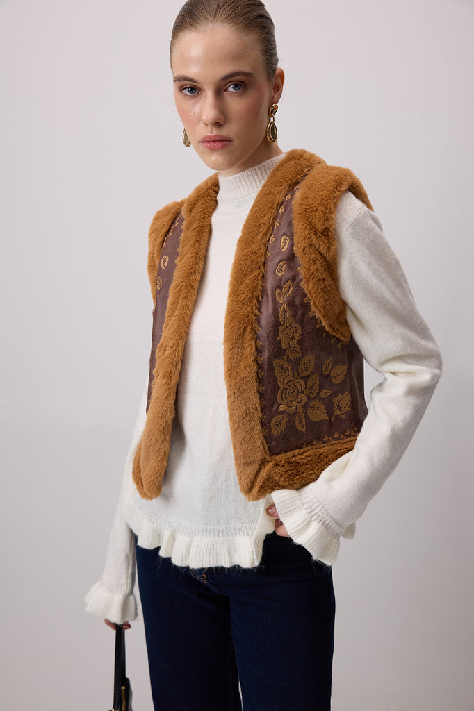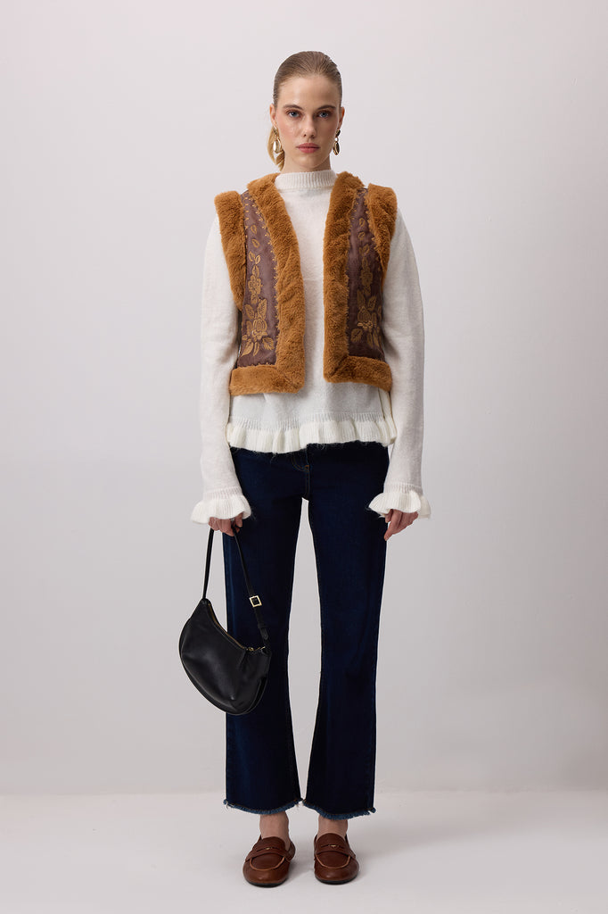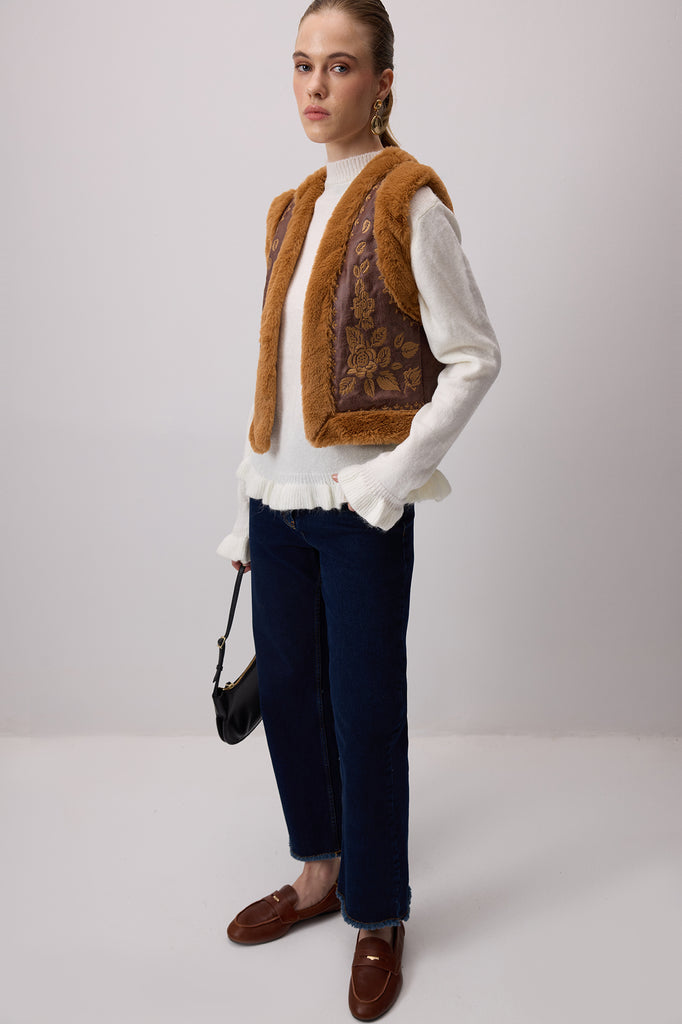 VEGAN LEATHER EMBROIDERED FUR VEST
