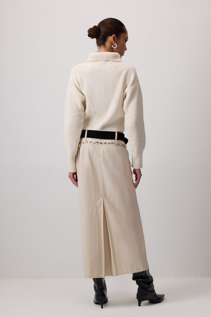 ZIPPERED WIDE COLLAR KNIT CARDIGAN