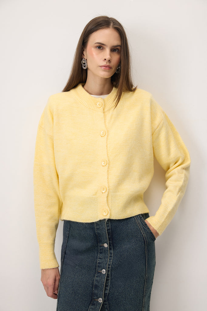 BUTTONED CROP KNIT CARDIGAN