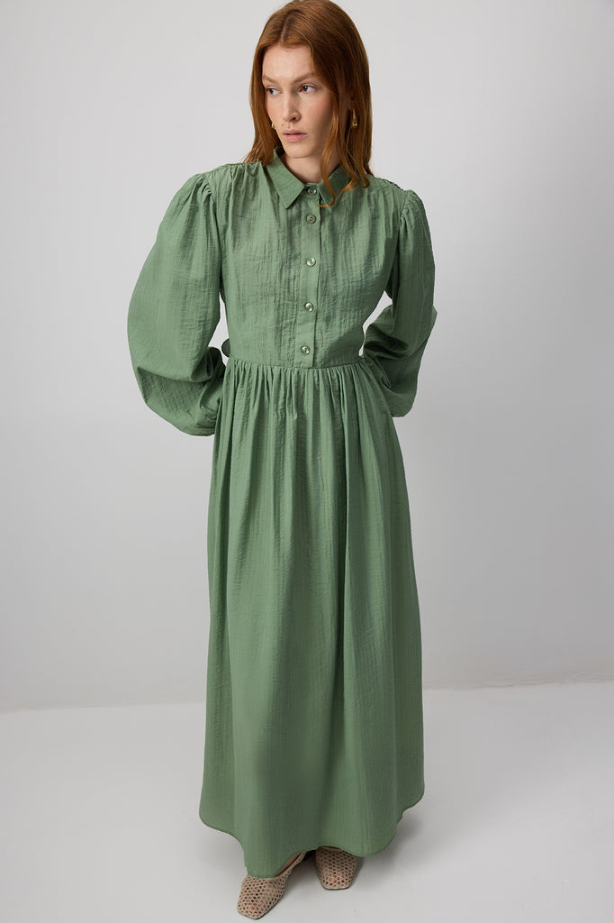 100% COTTON SCARFLED PEARL BUTTONED DRESS