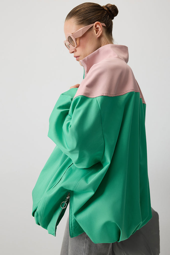 DENIM EFFECT STONE EMBROIDERED OVERSIZE JACKET