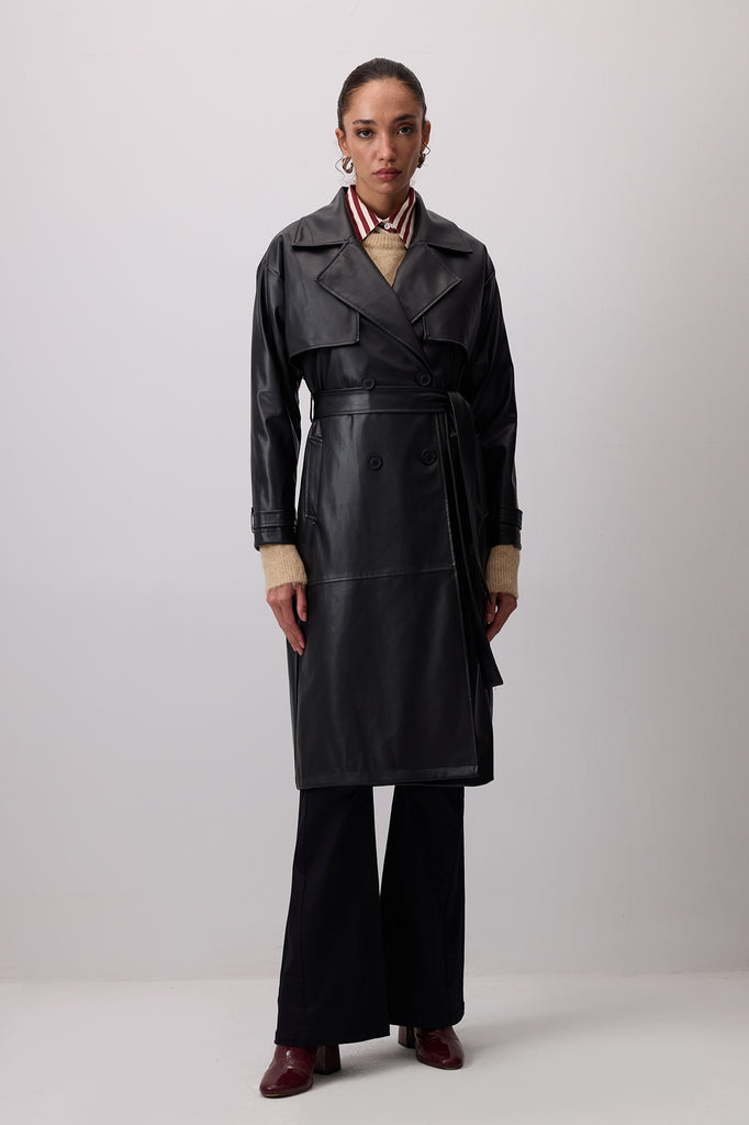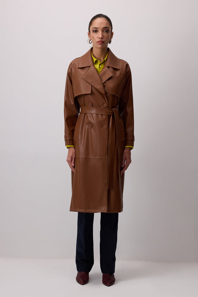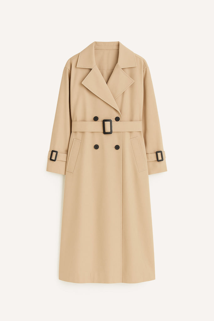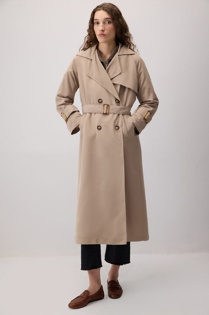 BELTED GOLD BUTTON DOUBLE BREASTED TRENCH COAT