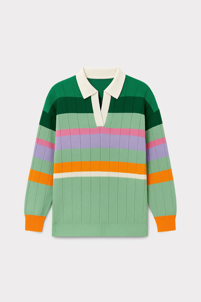 DIAMOND PATTERNED POLO COLLAR KNIT TUNIC
