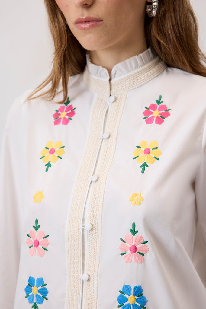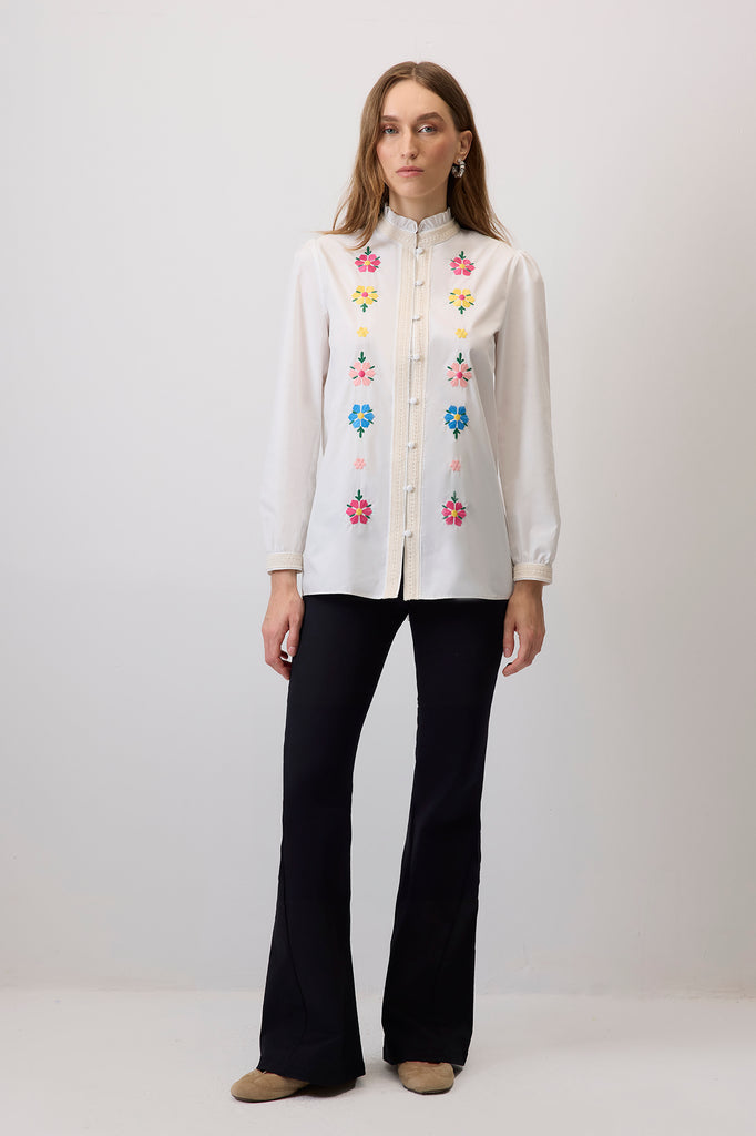 FLOWER EMBROIDERIED POPLIN SHIRT