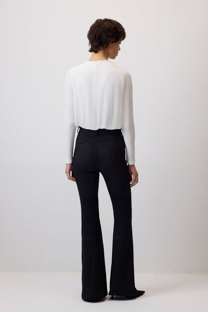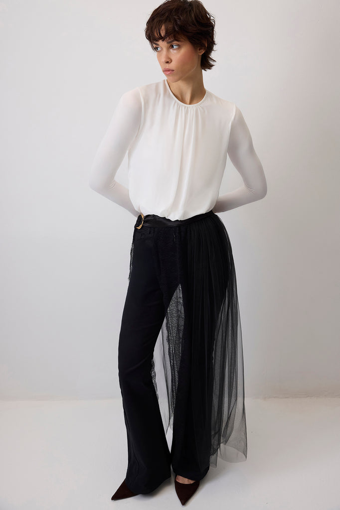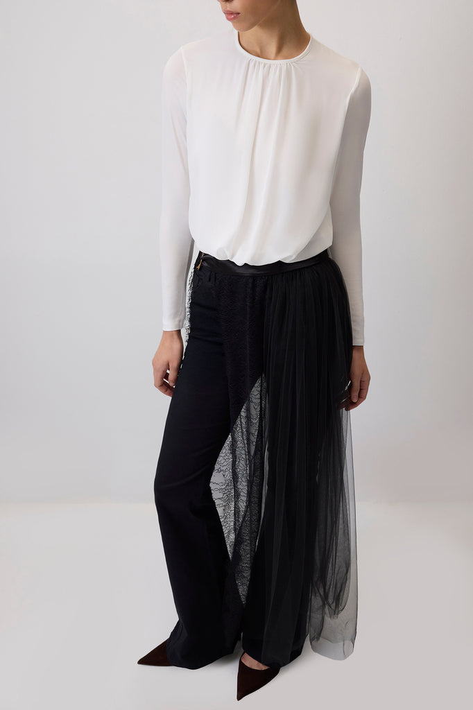 RUCHED CHIFFON SNAP BODYSUIT