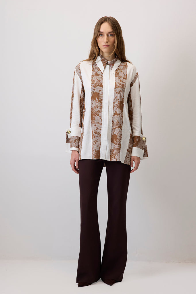 LACE PATTERN BHIRT WITH WIDE CUFFS