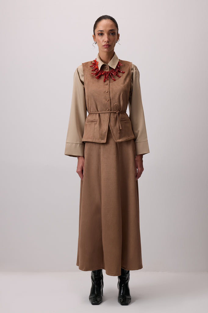 VEST SKIRT SUEDE SUIT