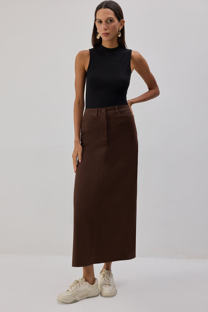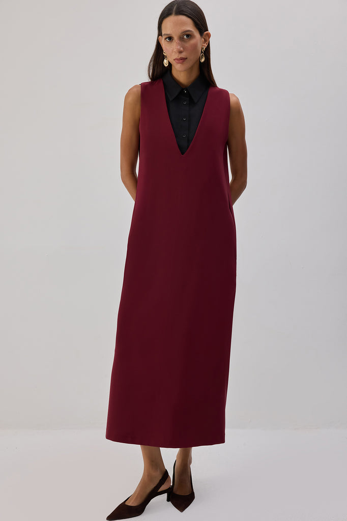 LONG LEATHER DRESS WITH FRONT POCKETS