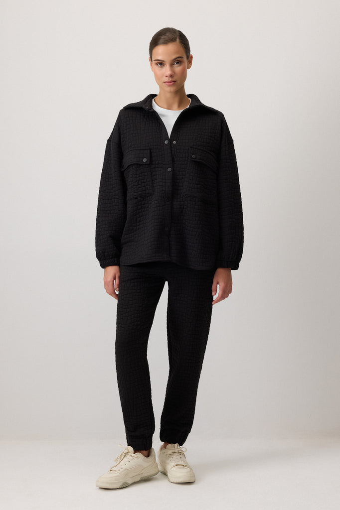 PATTERNED DOUBLE-BREASTED COLLAR TUNIC