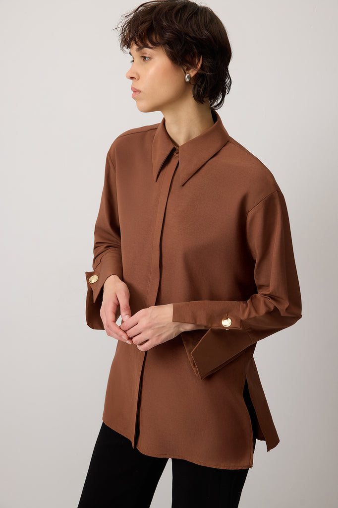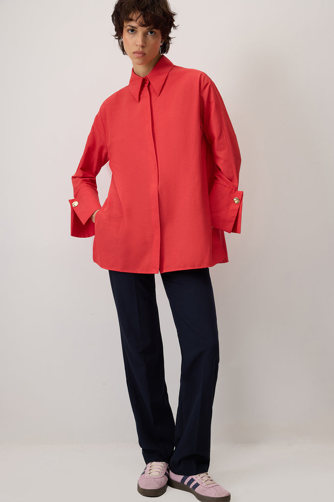 FLOWER EMBROIDERIED POPLIN SHIRT