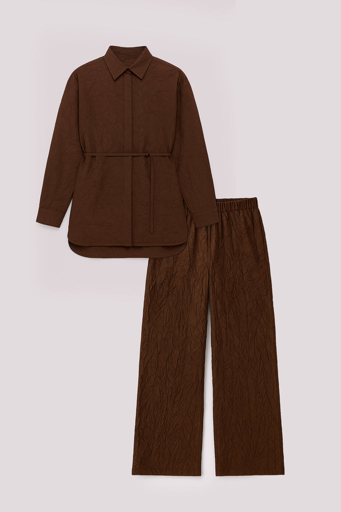 100% LINEN DOUBLE-BREASTED SHIRT AND TROUSERS SUIT