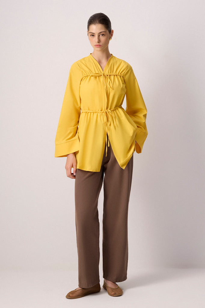 FRONT TIE SATIN BLOUSE SKIRT SET