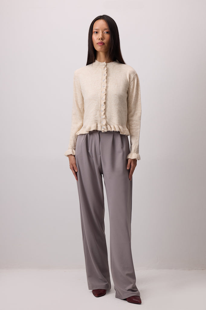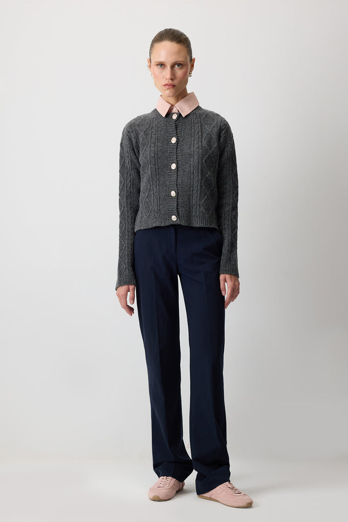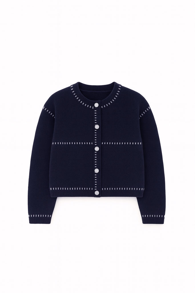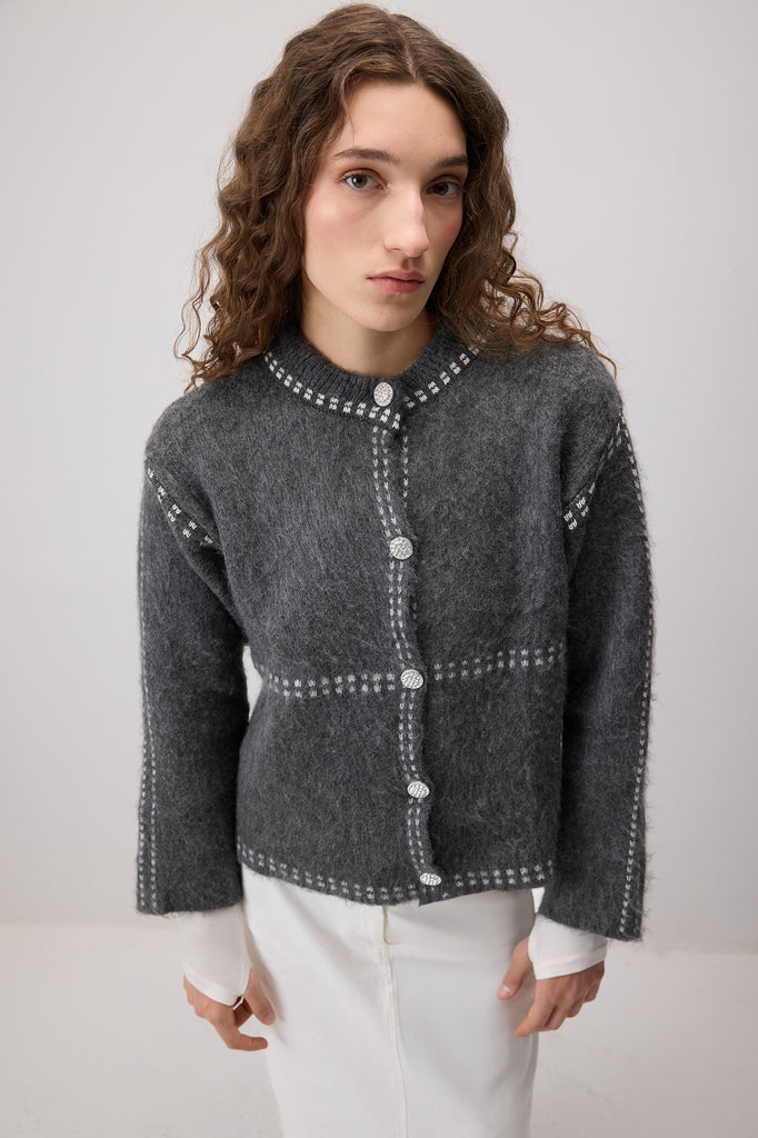 A KNIT CARDIGAN WITH BUTTON POCKET DETAILS