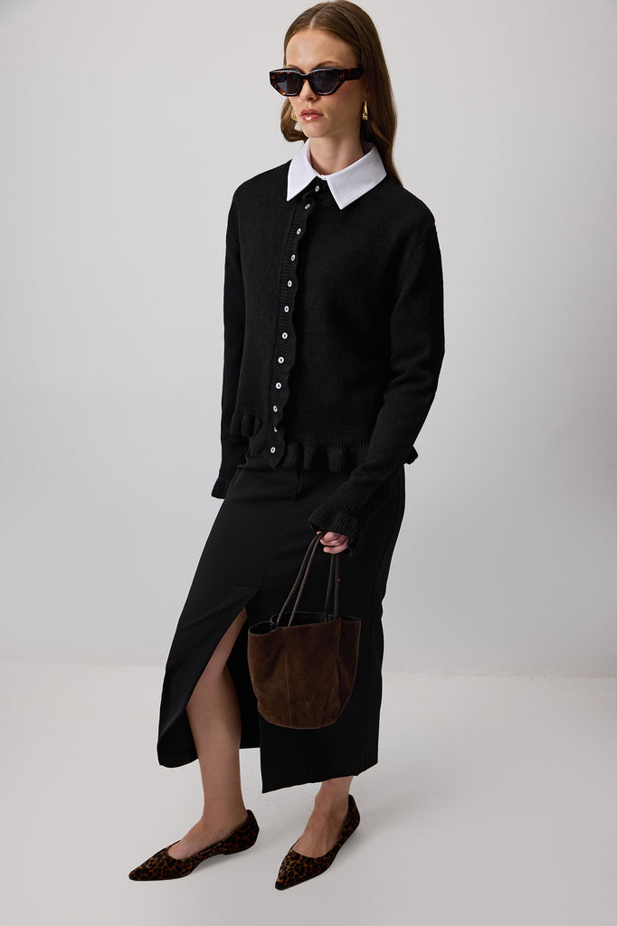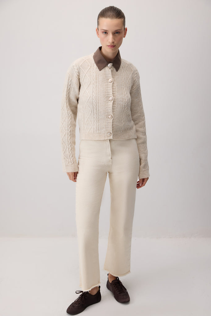 ZIPPERED WIDE COLLAR KNIT CARDIGAN