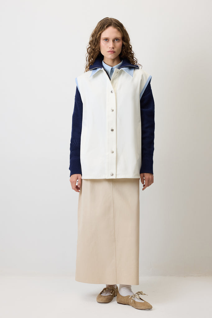DENIM VEST WITH FRONT POCKET DETAILED BELT