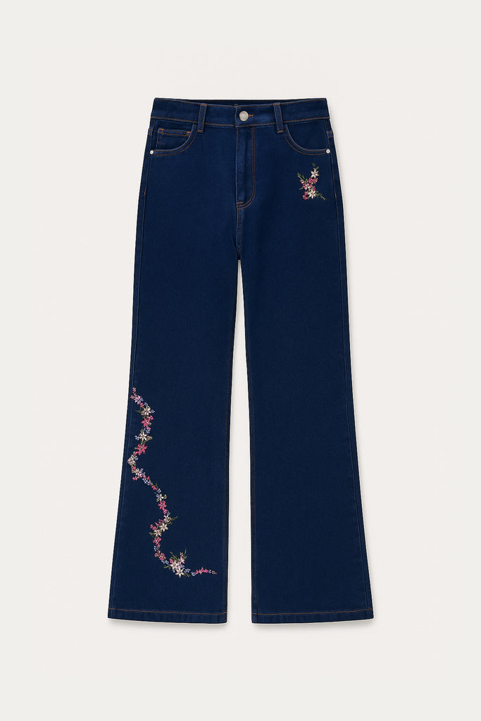 EMBROIDERED DENIM TROUSERS