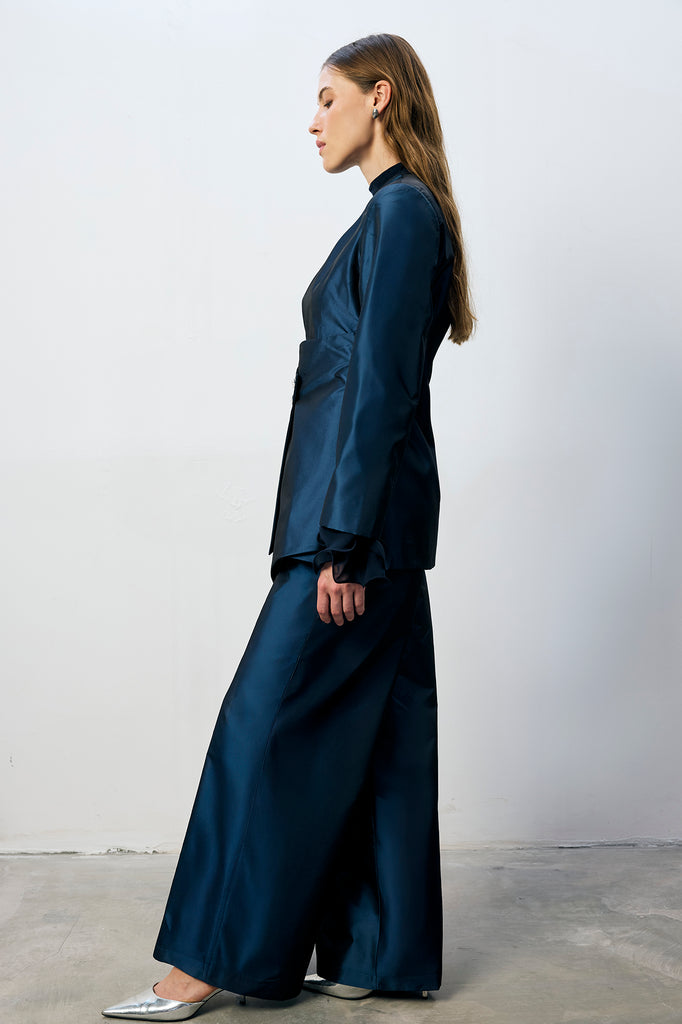 ASYMMETRIC JACKET AND PANTS SET WITH BUTTON DETAILS